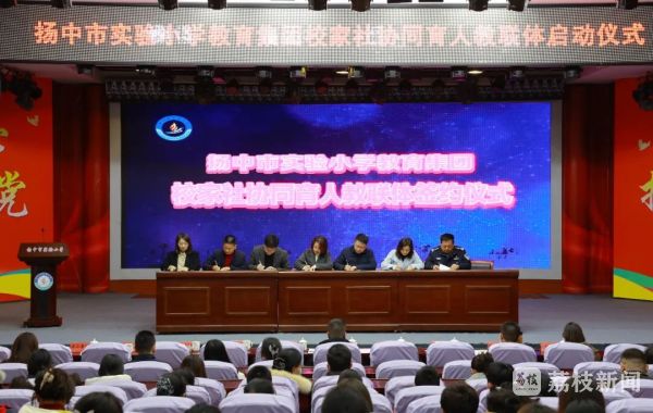 近日,扬中市实验小学教育集团校家社协同育人“教联体”启动仪式在该校报告厅隆重举行。扬中市教育局相关代表、七家共建单位负责人、师生及家长代表齐聚一堂,共同见证这一以孩子成长为核心的教育共同体正式启航。