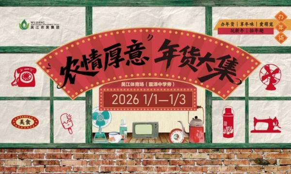 吴江年货大集即将热闹开市!吴江农发集团精心策划160+展位,上千样好货任你挑。2026年1月1日—3日,吴江体育场(震泽中学旁)带你一口气实现重回童年撸宠自由办齐年货。