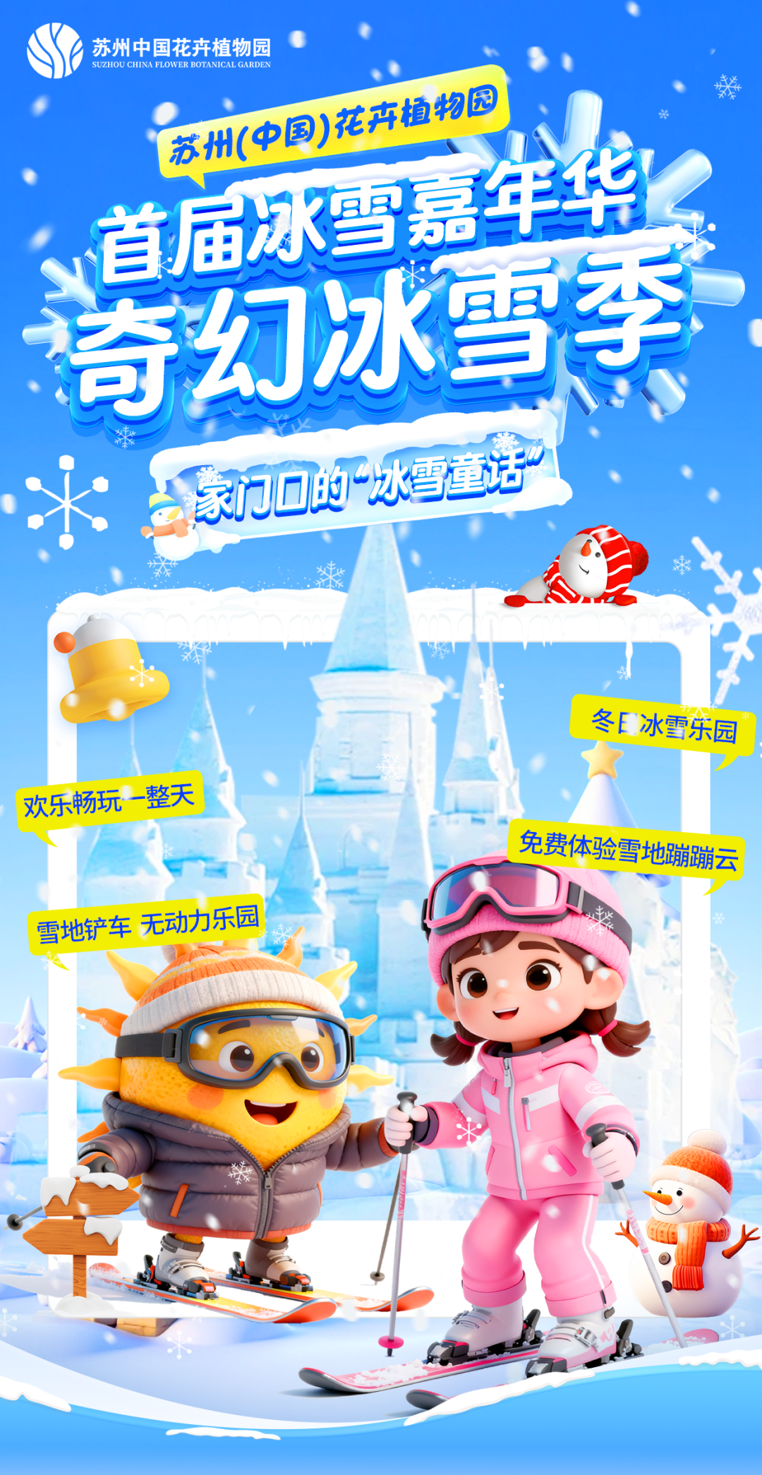 苏州(中国)花卉植物园冰雪世界,邀您开启冬日奇遇!在缤纷花海环绕中,畅玩冰滑道、冰上碰碰车,体验冰雪魅力。