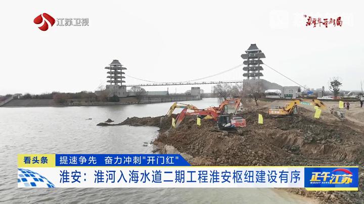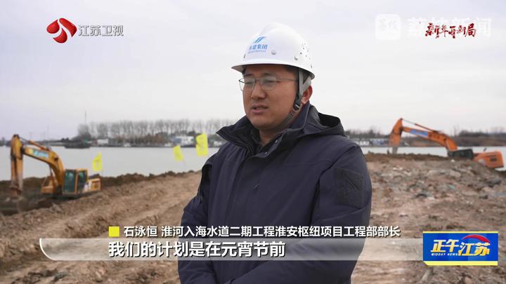 淮河入海水道二期工程淮安枢纽项目工程部部长石泳恒说:“我们的计划是在元宵节前具备水下验收的条件,两边的水位因为已经贯通,所以水位是相持,能保证京杭大运河上面所有的来往船只,经过我们导航明渠都能顺利地通行。”