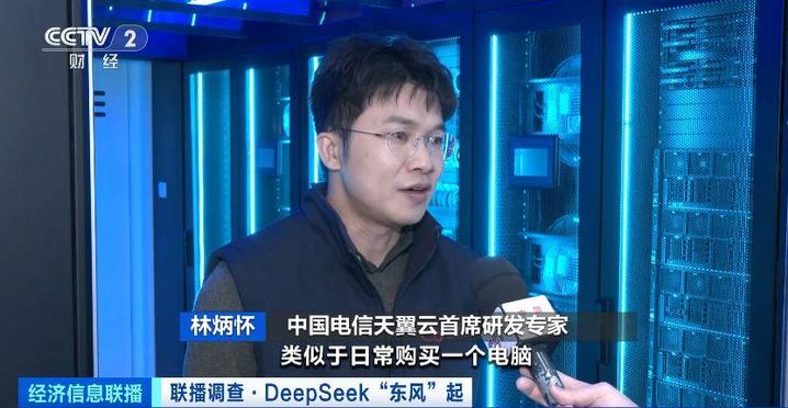 中国电信天翼云首席研发专家 林炳怀:用户无需云上去接入,类似于日常购买一个电脑,开箱就直接在企业里接入使用。国央企以及高校都有非常强烈的DeepSeek一体机的需求。
