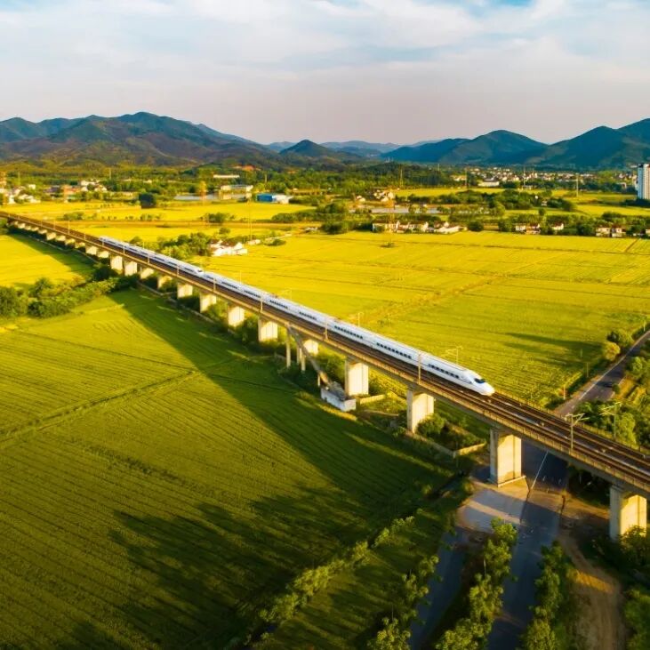 在丁蜀镇莲花荡和新街街道潼渚村,不时呼啸而过的高铁穿过油菜花田,开往春深处。