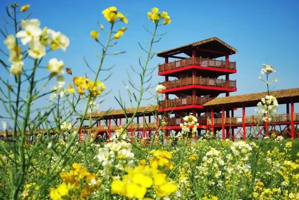 而白米荡湿地公园的油菜花临水照影,更平添几分温婉。