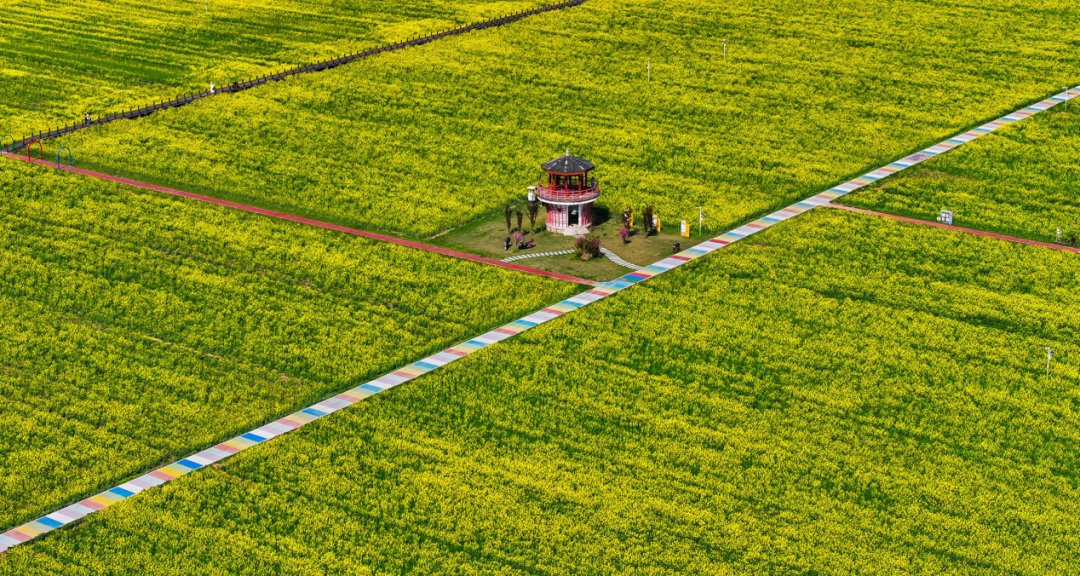 在杨巷镇邬泉村,漫步在蜿蜒的景观道,或者从观景楼俯瞰田野,沉浸于又一年的油菜盛放中。