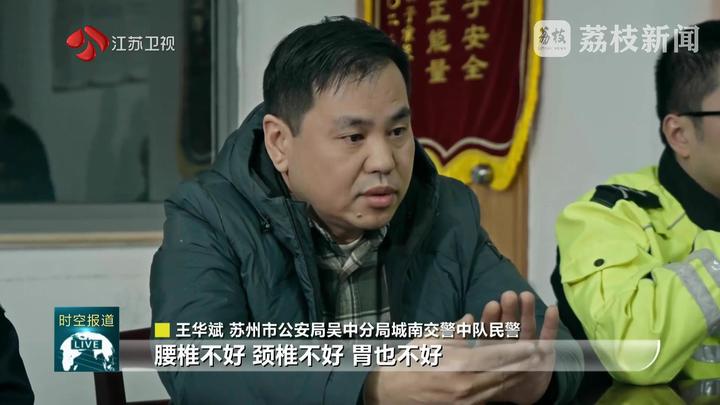 苏州市公安局吴中分局城南交警中队民警王华斌说:“他一身病,腰椎不好,颈椎不好,胃也不好,一天要十几种的药。”