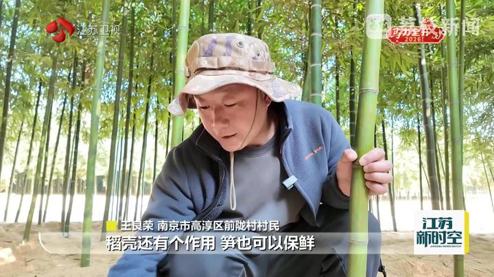 南京市高淳区前陇村村民王良荣说:“竹林地面上铺了一层稻壳,稻壳其实本来没什么用,变废为宝。冬天温度比较低,铺上稻壳以后能保温,笋容易冒出来;另外还有个作用,笋也可以保鲜。”