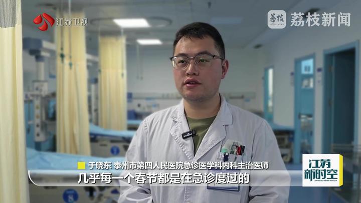 泰州市第四人民医院急诊医学科内科主治医师于晓东说:“干急诊快七八年了,几乎每一个春节都是在急诊度过的,守护好每一位病人,让全市百姓过一个平安健康的新年就是我们急诊人最大的心愿。”