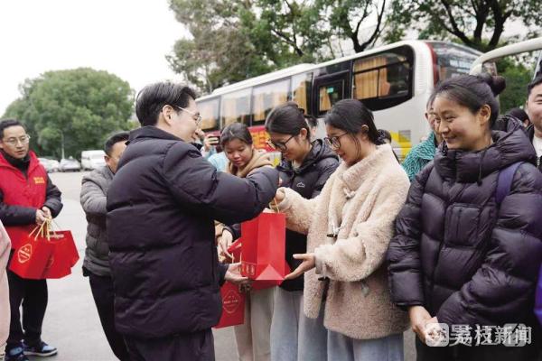 接车现场,吴江人社部门举行“乐业吴江”返岗就业欢迎仪式,为返岗务工人员送上了开工大礼包。