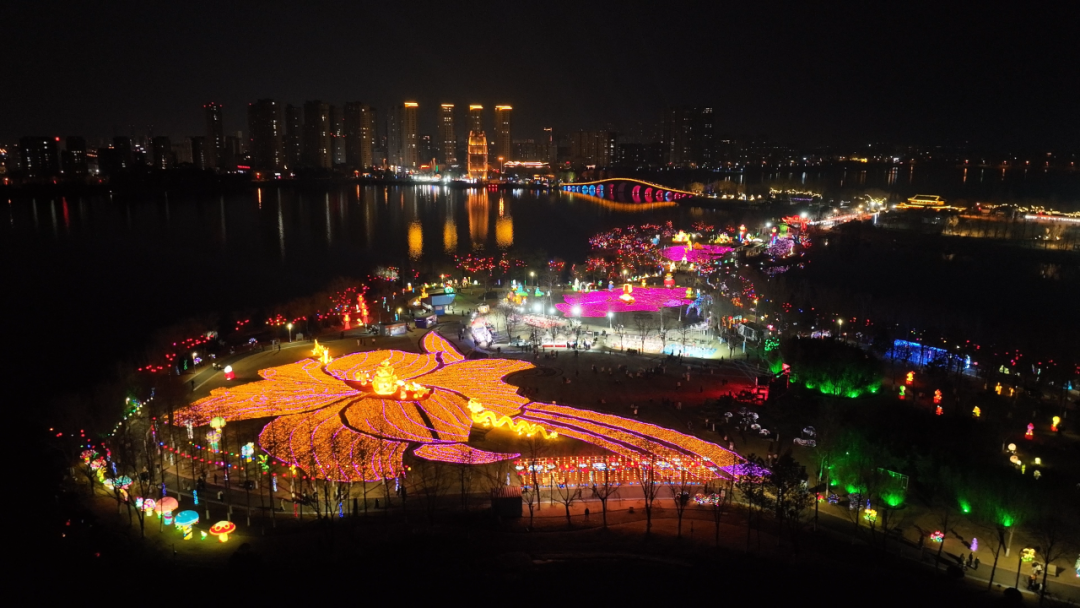 东海西双湖新春灯会流光溢彩,大型灯组与湖光水色交相辉映,成为游客打卡热点。