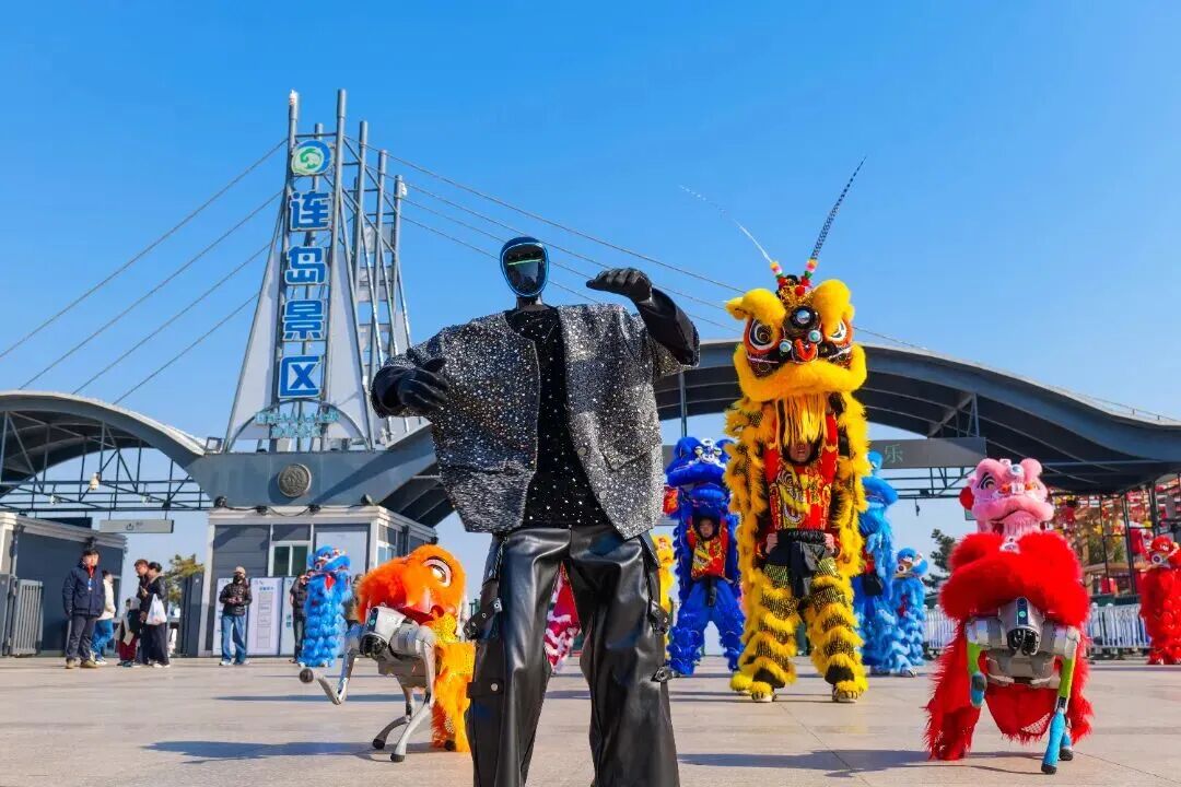 传统年味也注入了科技范儿,连岛景区创新推出“赛博山海 醒狮表演”,机器人与传统醒狮同台共舞,赢得阵阵喝彩。