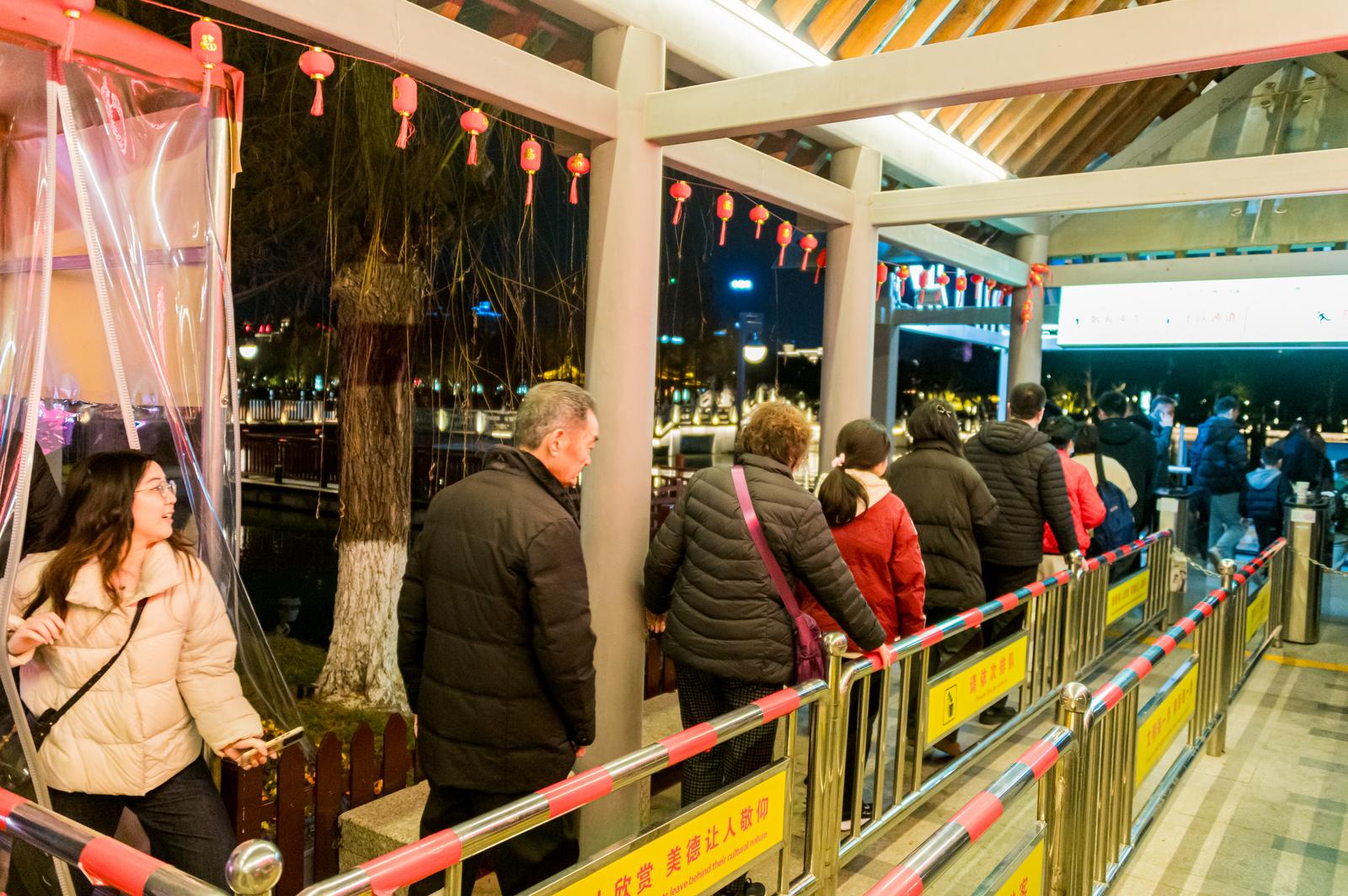 自今年元旦正式启航以来,“濠河夜画”便广受市民游客热捧。今年春节期间,为了让市民游客有一个更好的游览体验,南通濠河公司在游船码头处贴心设置了取暖姜茶供应点,并搭建了遮风挡雨的帐篷长廊;公司全员轮班值守,全力做好后勤保障服务。“除现场购票外,游客还可通过携程、抖音等平台提前购票。”南通濠河公司旅游科相关负责人介绍,后台数据显示,游客中不乏外地游客身影,既有来自江浙沪周边地区的,也有远道而来的北方朋友。