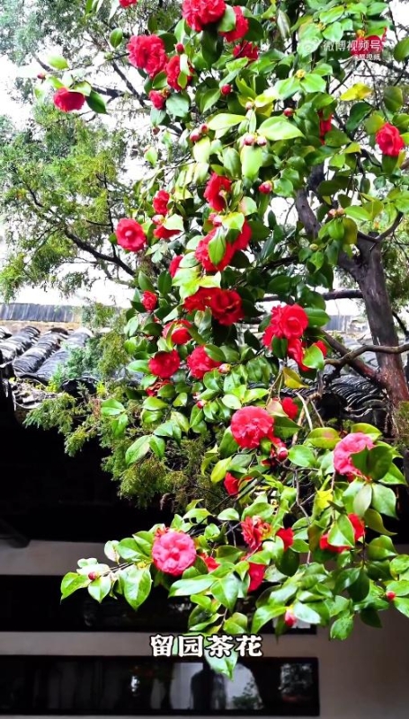 留园的茶花明艳绚丽。
