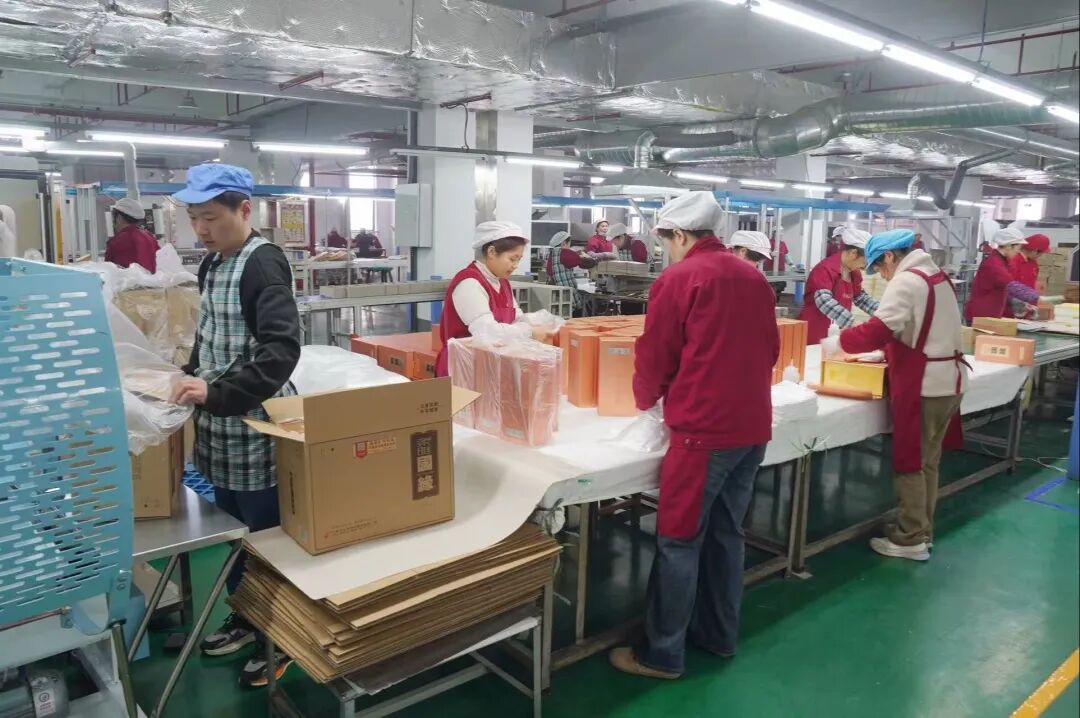 2月24日早上8点,位于洋河新区的宿迁市盛禾包装有限公司生产车间内一派繁忙,工人们有序开展制盒、组装、质检等作业,全力赶制订单。该公司于正月初八正式开工,240名工人全员到岗,以饱满干劲抢抓新春生产先机,满足本地及周边酒企包装订单需求。