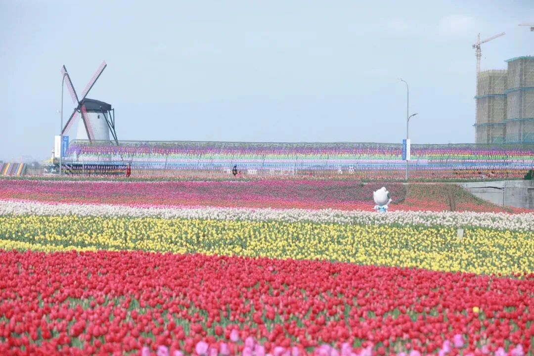 第九届郁金香花海种植面积约1.1万方,30多个珍稀品种均为荷兰培育空运而来,整个花田约50万株郁金香将于3月底在江海边绽放,本届花卉品种有香石竹、孟菲斯、新湖之光、小黑人、红灯笼、橙汁、美丽巨人、粉色激情、金普瑞斯玛、牛津精华等,同时辅以二月兰,合力打造浪漫的花海奇观,活动现场配置各种美陈打卡点,在三水交汇之间打造花与海的浪漫邂逅。