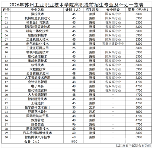 计划招收1500人!苏州工业职业技术学院2026年高职提前招生全面启动