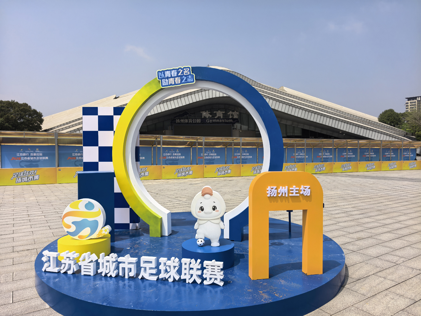此外,在体育公园中心广场上,设有两处以“鹅嘟嘟”为主题的赛事打卡点,造型亮眼、氛围感拉满,方便球迷打卡留念,传递赛事活力与扬州特色。
