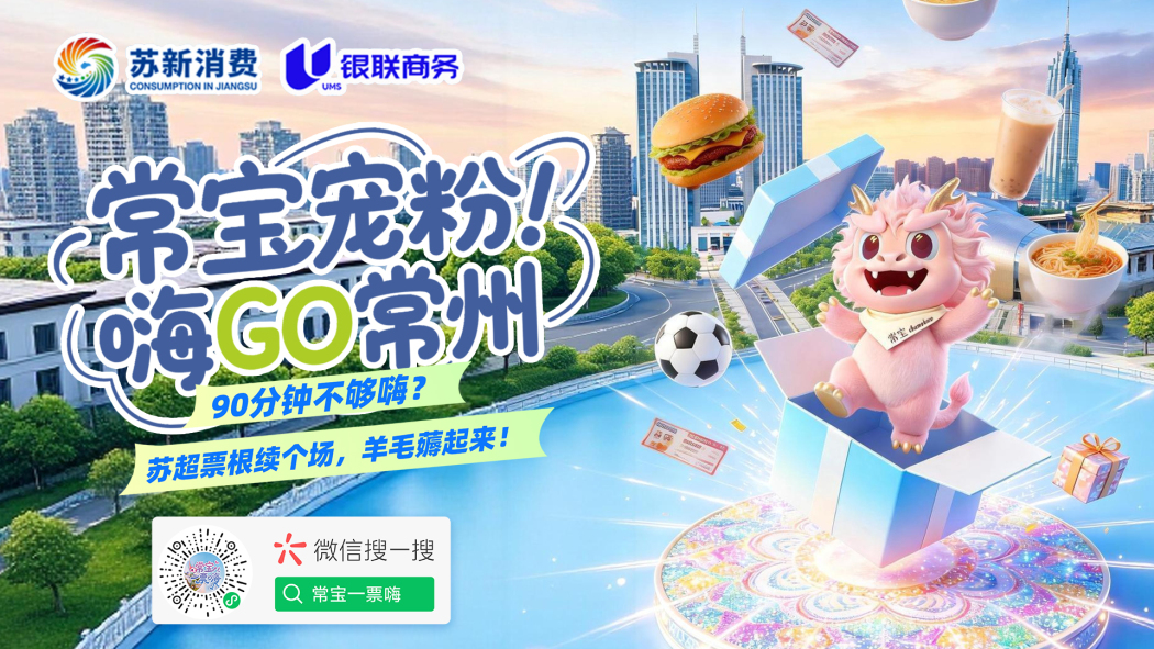 一张票根,串联全城烟火;一方平台,激活消费潜能。随着2026年江苏省城市足球联赛揭幕战临近,常州市商务局携手银联商务支付股份有限公司江苏分公司、江苏常观数字科技有限公司,依托“常宝一票嗨”微信小程序平台,正式推出“苏超宠粉,嗨GO常州”苏超票根权益活动。活动面向持票球迷发放“常宝超级权益包”,同时向全体市民及游客发放总价值5000万元的交通出行优惠礼包。此举以苏超揭幕战为起点,推动赛事“流量”转化为城市消费“增量”,是常州做强赛事经济、推动“票根经济”迭代升级的务实举措。