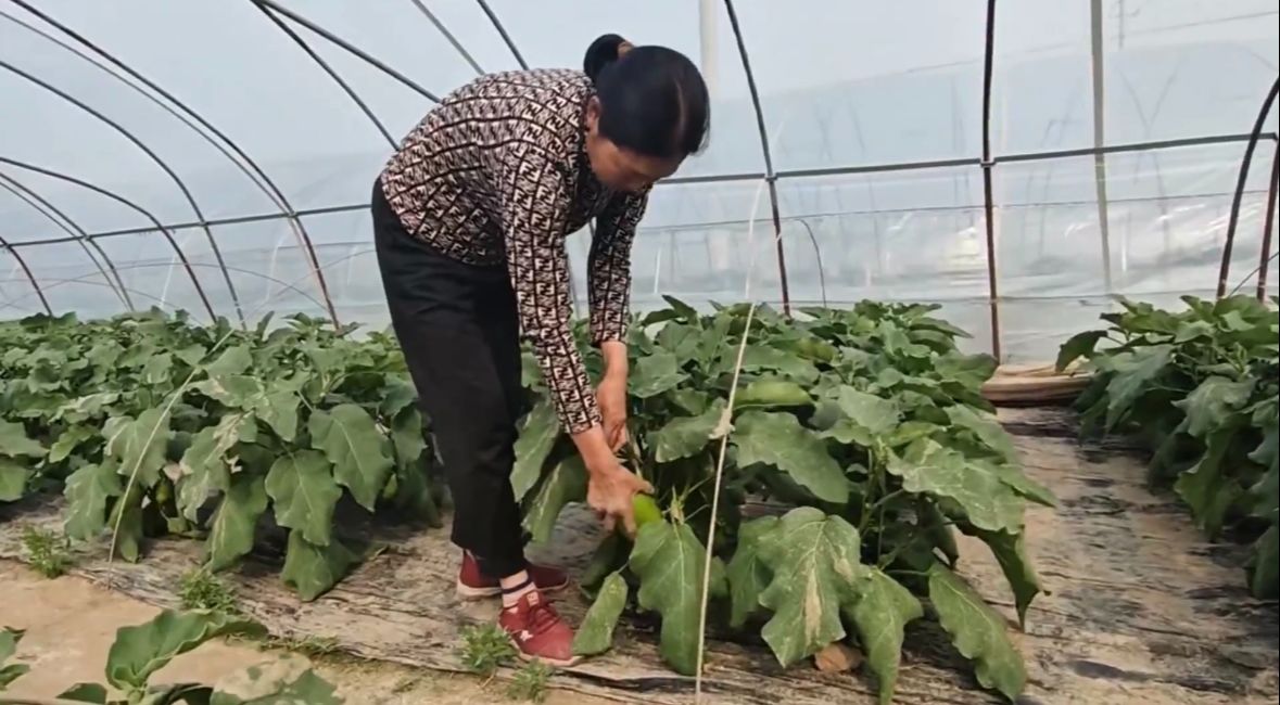 4月10日上午,宿迁市宿城区龙河镇罗圩社区的孙思军家庭农场一片忙碌景象:种植大棚内,工人们往来穿梭,麻利地采摘茄子,不时传来阵阵欢声笑语,现场洋溢着丰收的喜悦和蓬勃的生机。