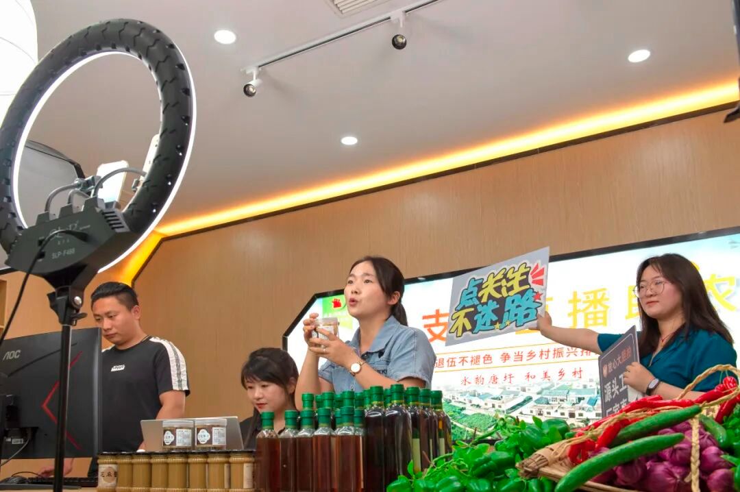 唐圩三产融合产业园的直播间内,主播正在介绍产品