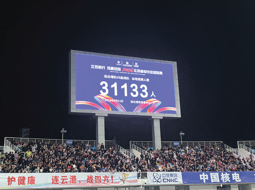 昨日19:40,2026苏超联赛首轮焦点战“苏北德比”在连云港市体育中心激情上演。主场作战的连云港队身着蓝色战袍迎战粉色球衣的盐城队,31133名现场观众共同见证这场攻防大战。最终,盐城队以2∶0击败连云港队,斩获新赛季开门红。