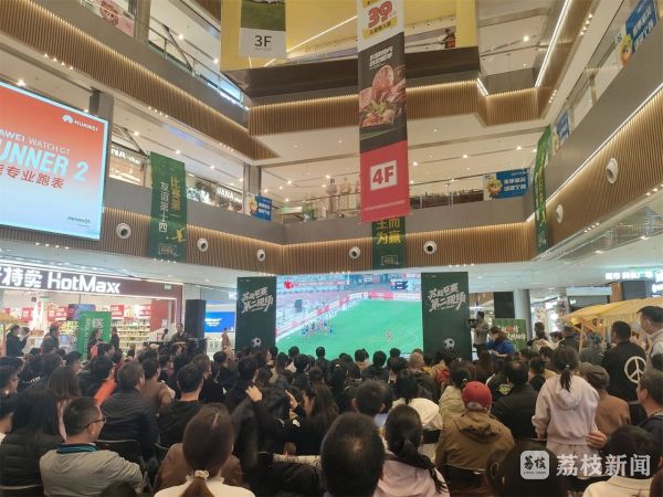 除了现场,在南通,市民也关注着比赛的进展。据统计,南通全市50个“第二现场”同步开放环西文化广场、紫琅公园湖山广场、滨江邮轮中心、吾悦广场、万达广场……各大商圈、广场人潮涌动大屏点亮,呐喊汇聚南通的夜晚,被足球与热爱彻底点燃。