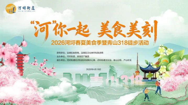 4月18日上午,无锡市滨湖区河埒街道“河你一起 美食美刻”2026春夏美食季在青山公园正式启幕。与往年不同,今年的活动将美食市集与山地徒步创新结合,同期发布了专属无锡的「青山318」徒步线路,为市民打造了一个可逛、可吃、可运动的春日微度假场景。
