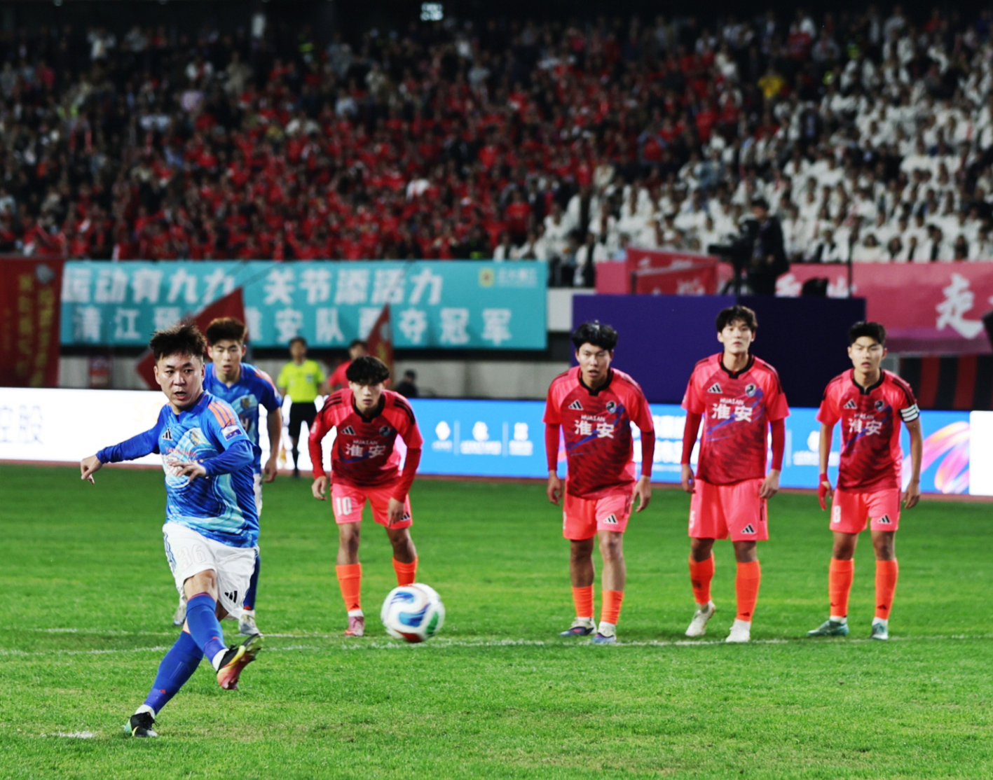 18日晚,“江苏银行 苏豪控股”2026年江苏省城市足球联赛(以下简称“苏超联赛”)第二轮扬州队客场挑战淮安队比赛落幕。扬州队在被罚下一人的情况下,凭借徐君的点球,顽强在客场1比1逼平了淮安队。值得一提的是,去年联赛,徐君就打进了苏超联赛的历史首球,而一年之后,又是徐君的进球帮助扬州队在被动的情况下,拿到了赛季第一分。