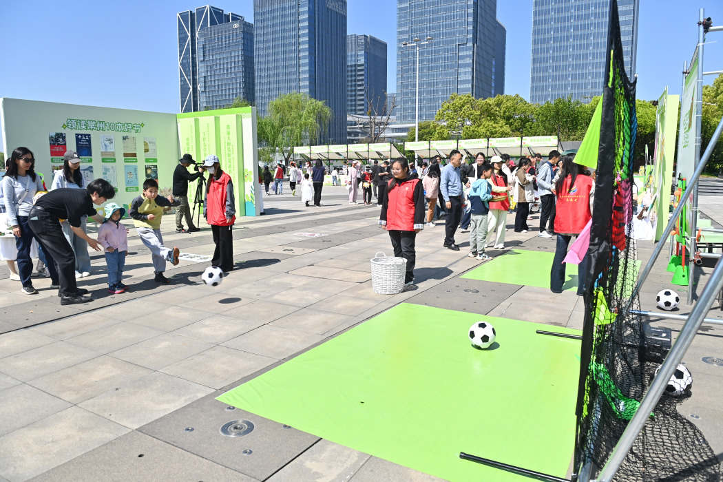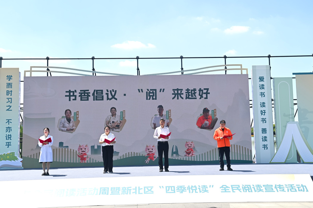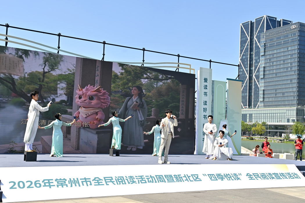 4月19日上午,2026年常州市全民阅读活动周暨新北区“四季悦读”全民阅读宣传活动,选择以“绿茵逐梦 书香同行”为主题,在高铁新城新龙湖公园广场宣布启动,打造了一场兼具文化底蕴与城市活力的全民阅读盛宴。