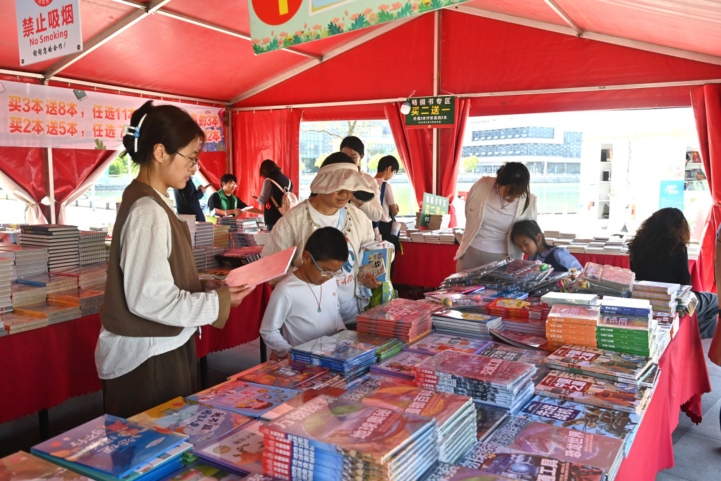 市集设置了多个互动板块,“龙城墨趣”带来非遗文字体验、文物修复实操、四大名著游园会等,让市民沉浸式感受传统文化魅力;“东坡书食坊”融合东坡饮食文化,推出书香轻食,实现味蕾与文字的同频共振;“阅动苏超・公益同行”设有邮政惠民图书巡展、移动图书馆,推出“买2送5”“买3送8”等惠民优惠,吸引大批读者踊跃选购,直呼“超值”。