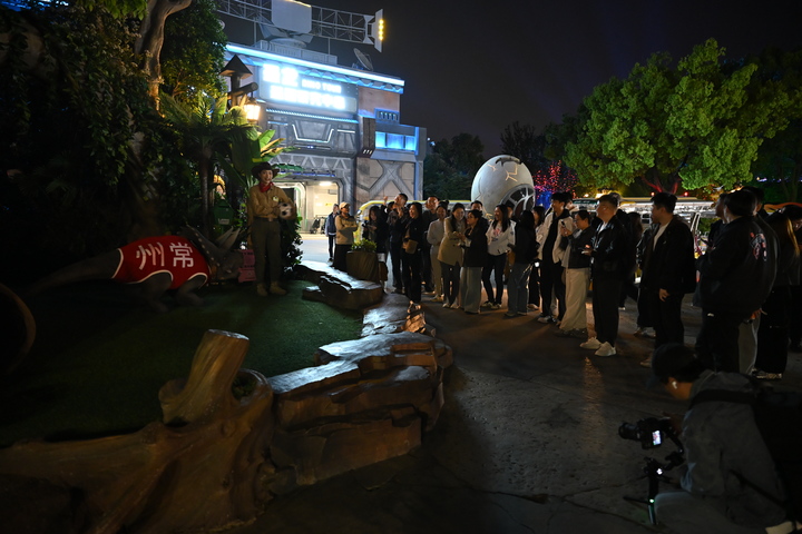 支撑这一切的,绝不仅仅是灵光一现的创意,而是常州为恐龙IP持续注入的“数智基因”。夜幕降临,中华恐龙园上空,一场名为“无界之弈”的无人机大秀正在上演。数百架无人机腾空而起,在龙城的夜幕上拼出飞翔的翼龙等独特造型,万千光影与地面的灯光秀交相辉映。这不是一场简单的演出,而是科技赋能文旅的生动注脚——恐龙IP,正从平面的形象,跃入立体的沉浸体验。钻进4D影院的动感座椅,穿越恐龙基因研究中心的实景通道,每一个毛细孔都在感受侏罗纪的风声与震颤。科技,让“恐龙”真正活了过来。