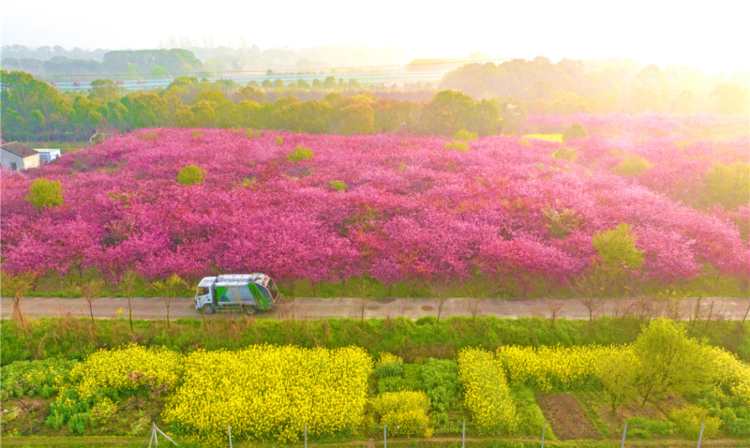 4月8日,记者在该镇龙泉湾海棠园内看到,粉白、玫红的花朵缀满枝头,与太湖碧波、山峦晨雾、茶园绿意相映成趣,勾勒出江南春日的唯美图景,吸引众多市民游客踏春赏景,带动乡村旅游持续升温。
