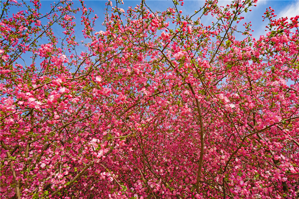 据悉,龙泉湾海棠园从2013年开始逐步种植,现有种植面积200亩,其中海棠70亩,品种有垂丝海棠、西府海棠等。